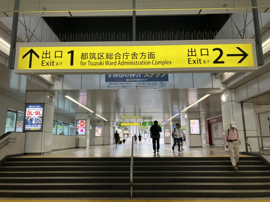 横浜市営地下鉄のグリーンラインかブルーラインに乗って、「センター南駅」で降ります。スタート地点まで行くために、出口1に向かいます。