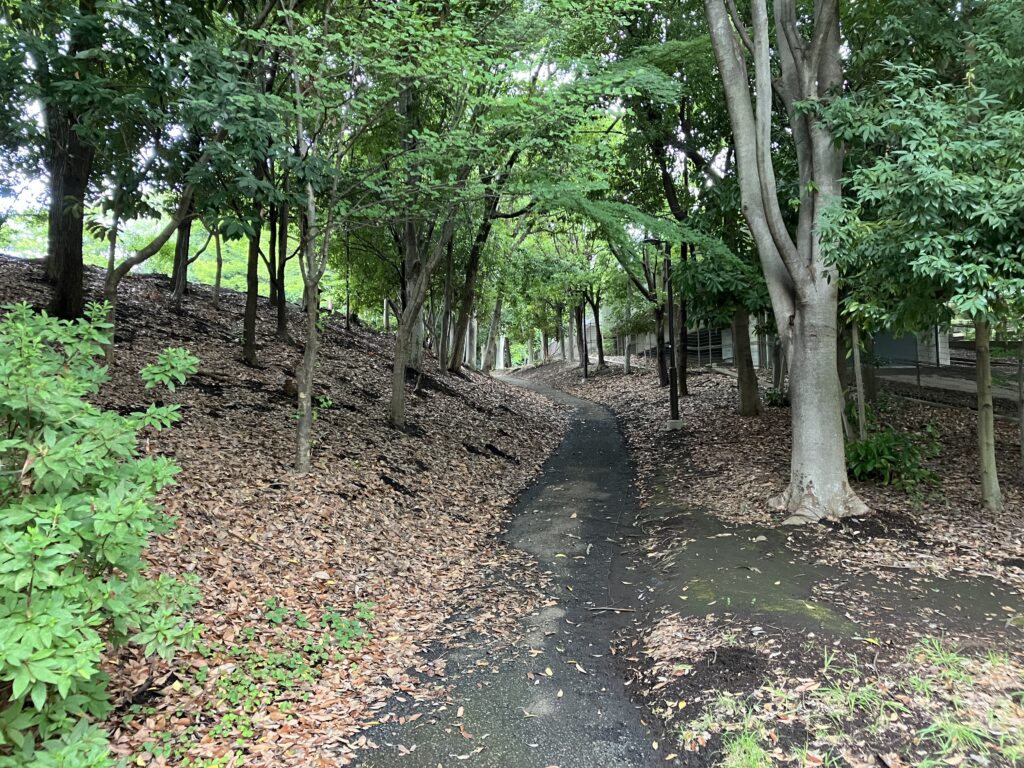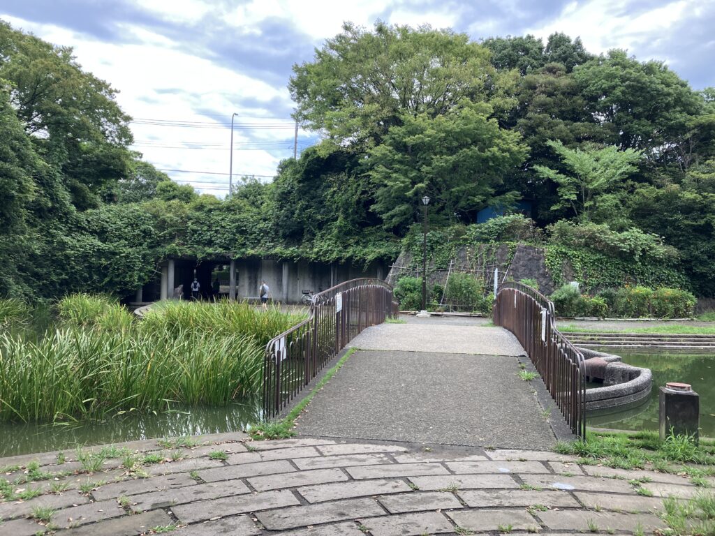 センター南駅に向かうため、茅ヶ崎公園の北側の自然生態園を通り、大原歩道橋に向かいました。