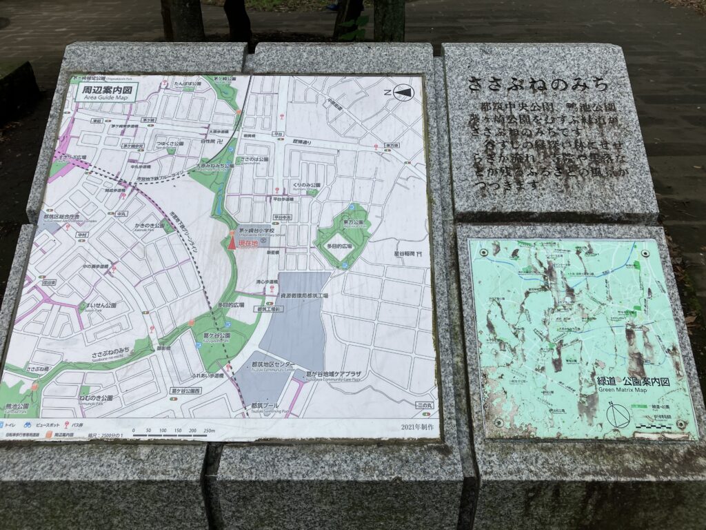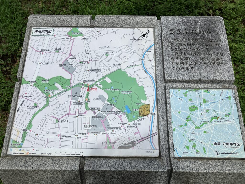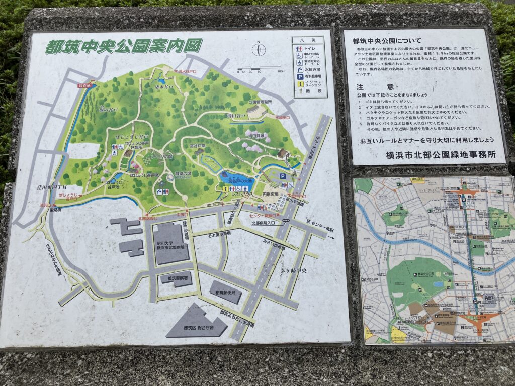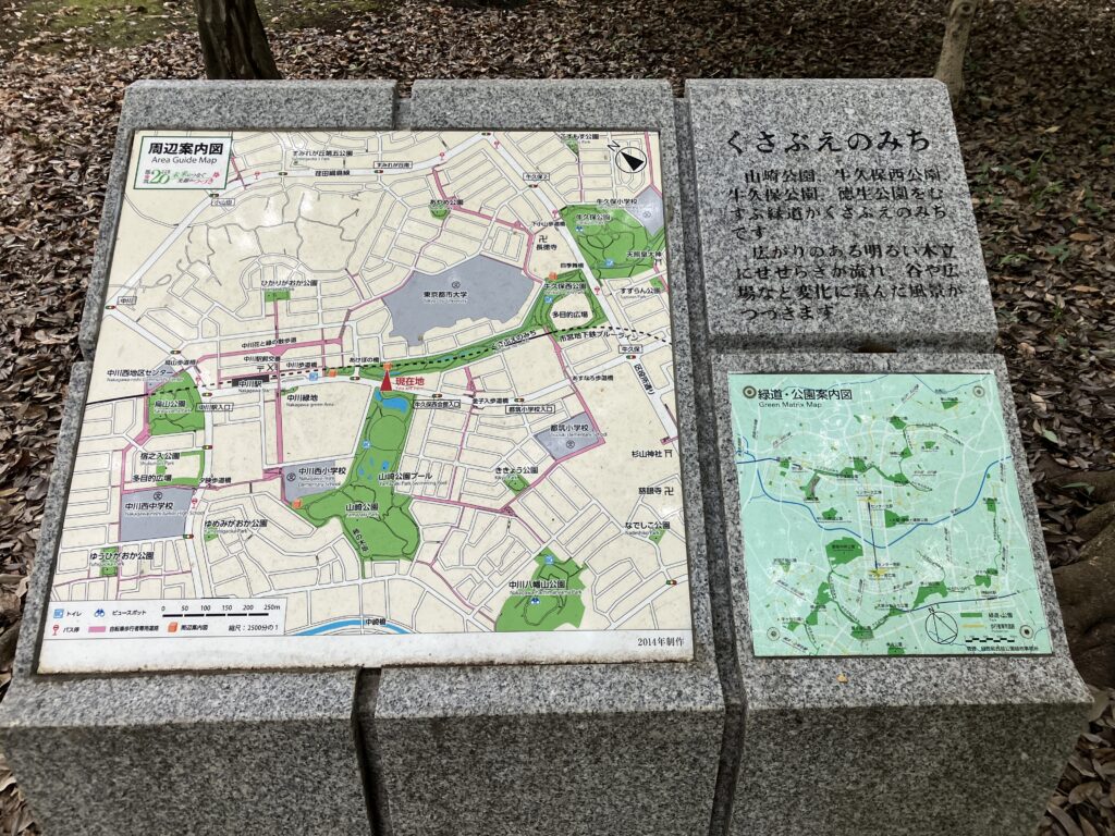 中川八幡山公園の西側を走っていくと、周辺案内図がありました。