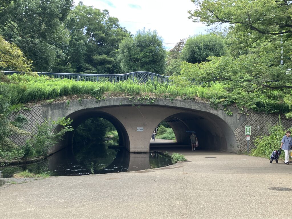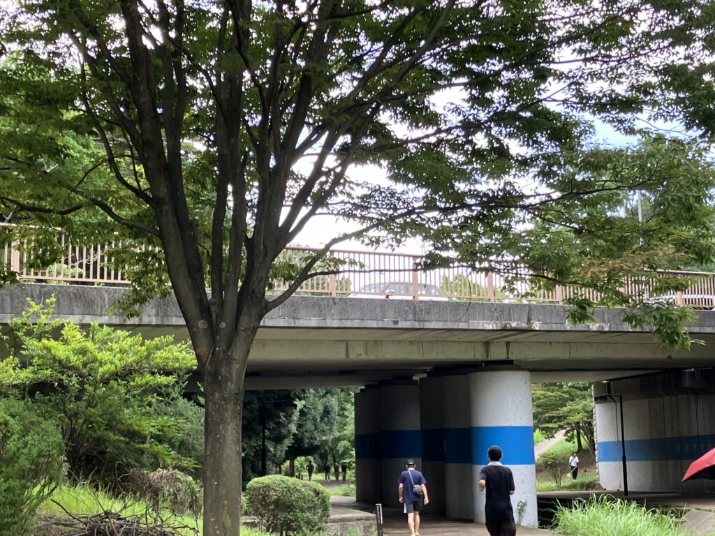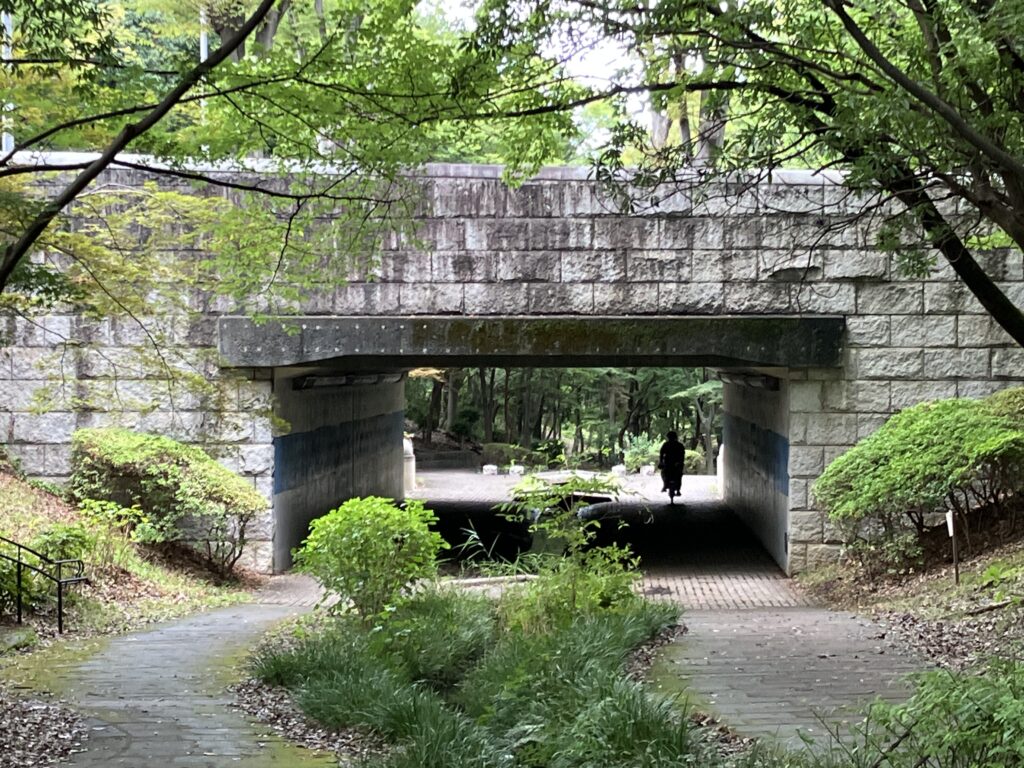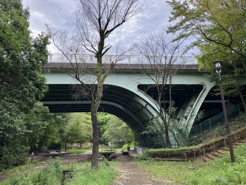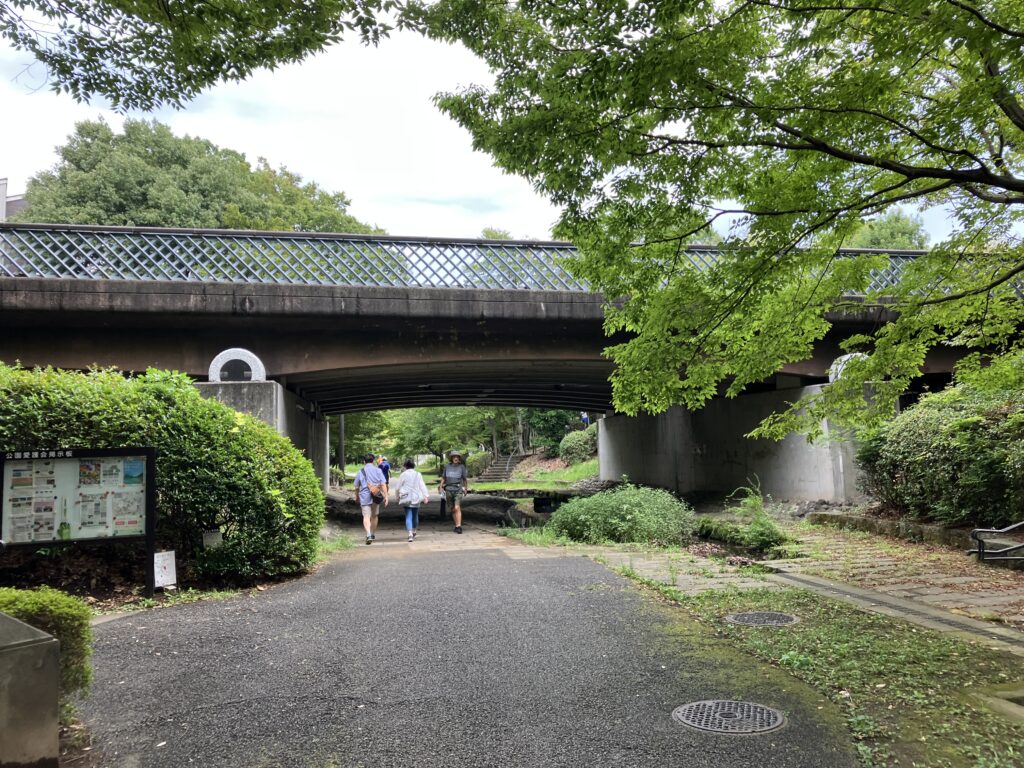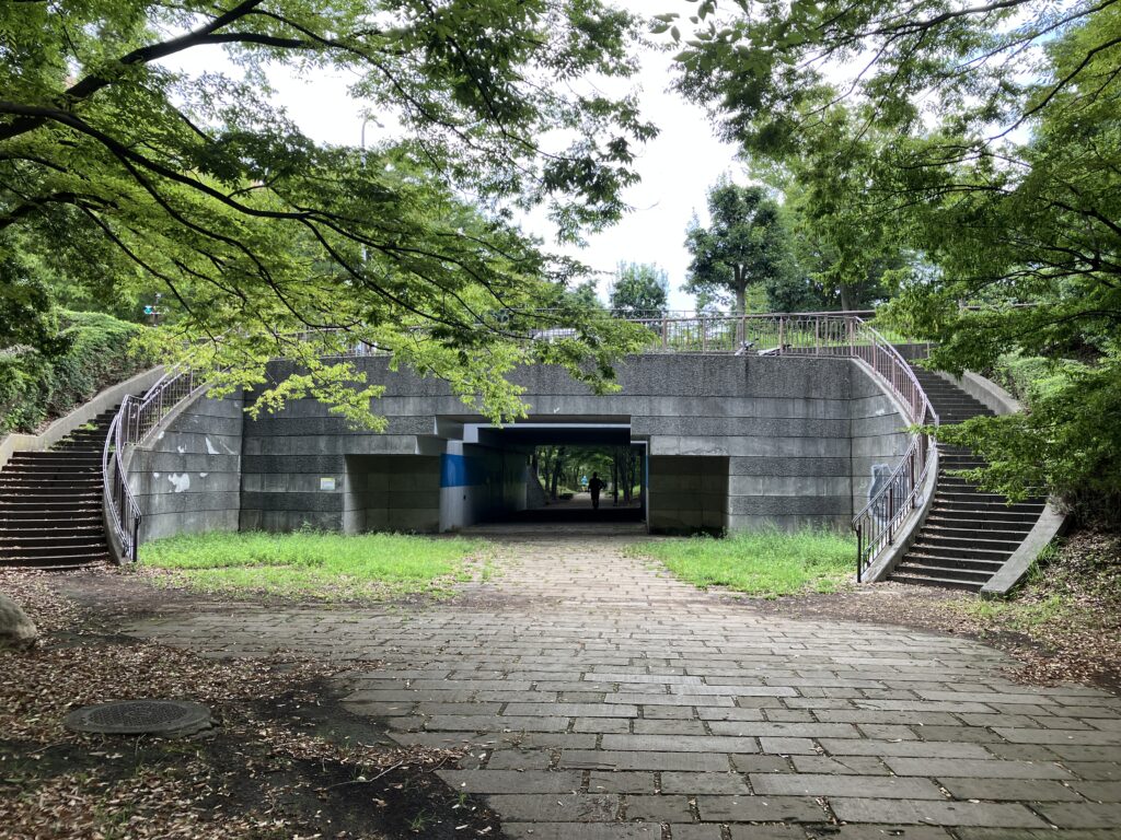 都筑中央公園に入るために、新羽荏田線の下をくぐります。