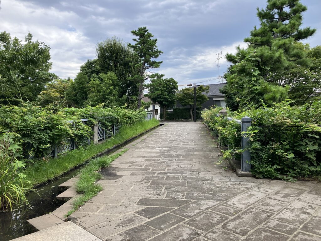 「せきれいのみち」を進むと、せせらぎ公園が見えてきます。