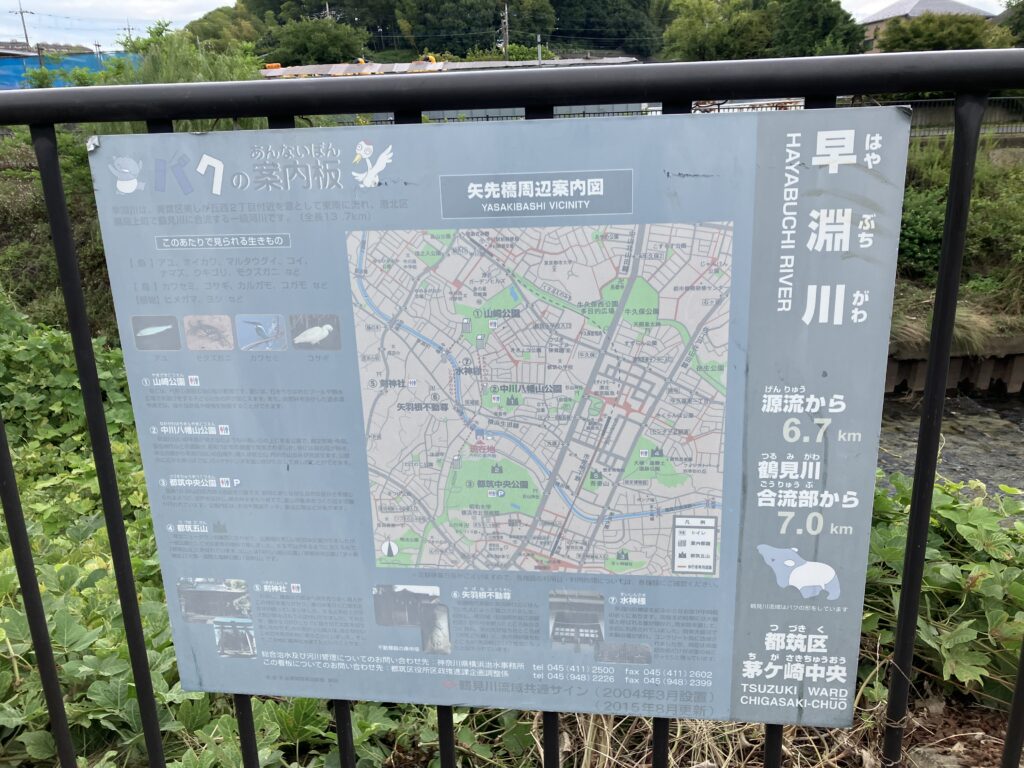 都筑中央公園の西側を抜けた後「やさきのみち」を進むと、早渕川に突き当たります。