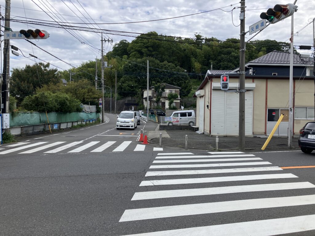 この交差点を渡り、中川八幡山公園の西側を通ります。