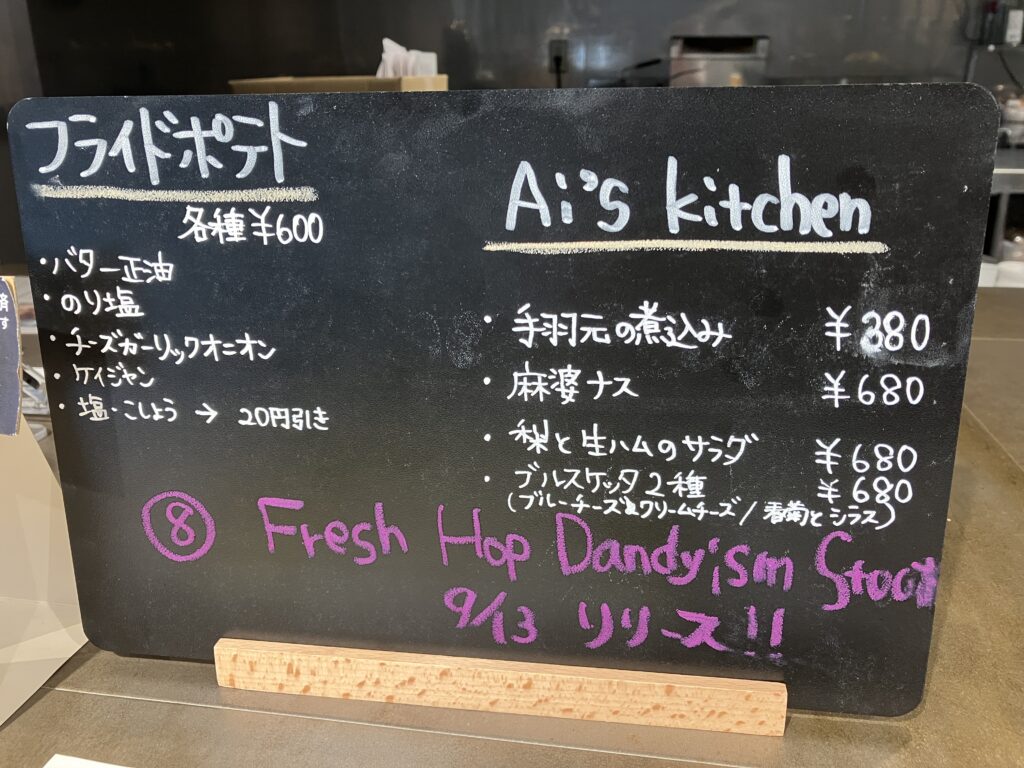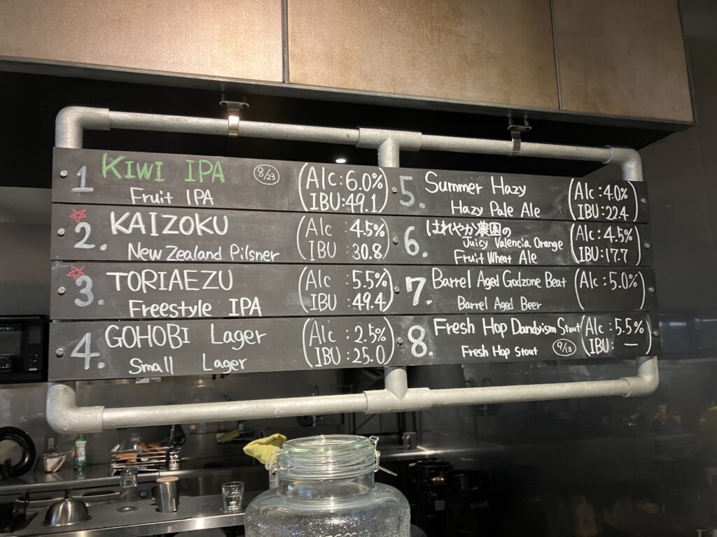 注文カウンターの右側に、今日のビールのラインナップが書かれている。