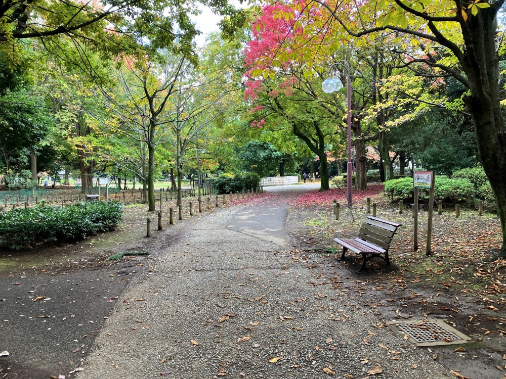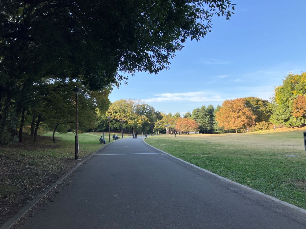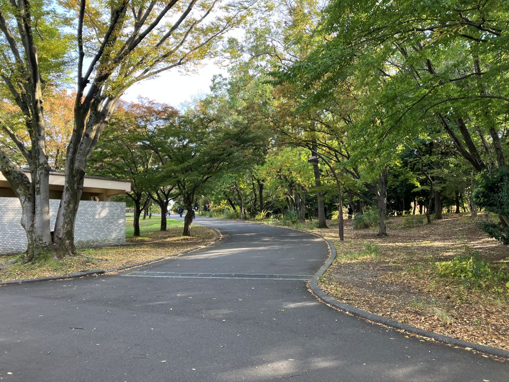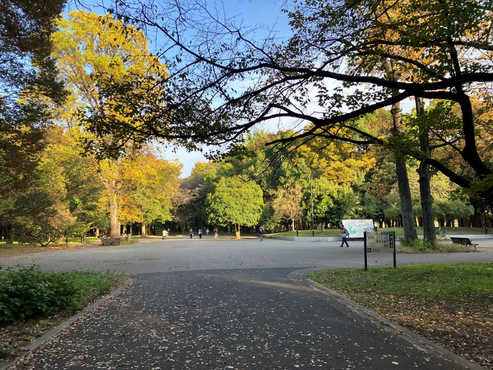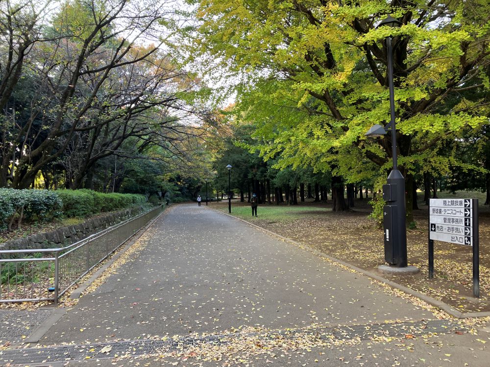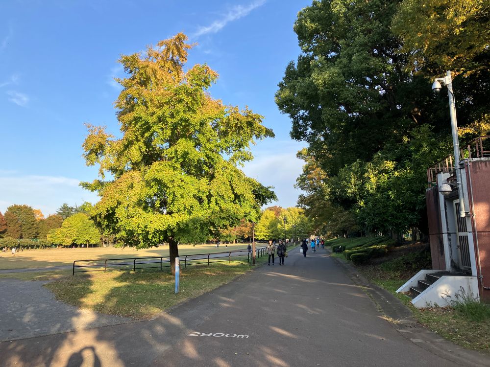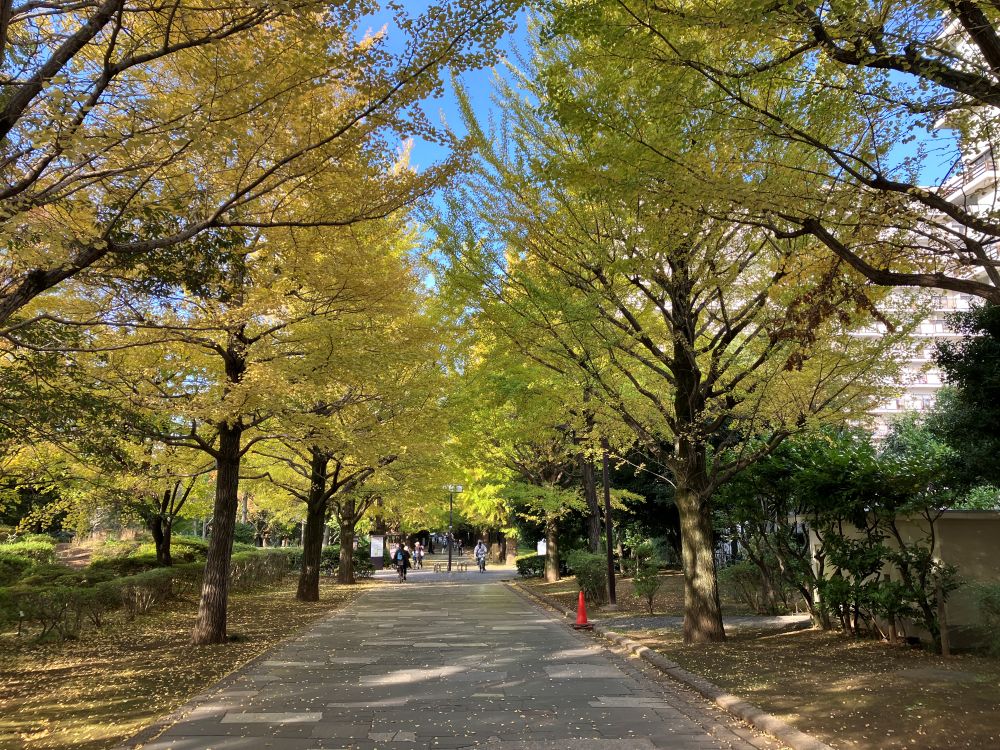 秋の陽公園からパークス光が丘の隣のイチョウ並木を走ります。