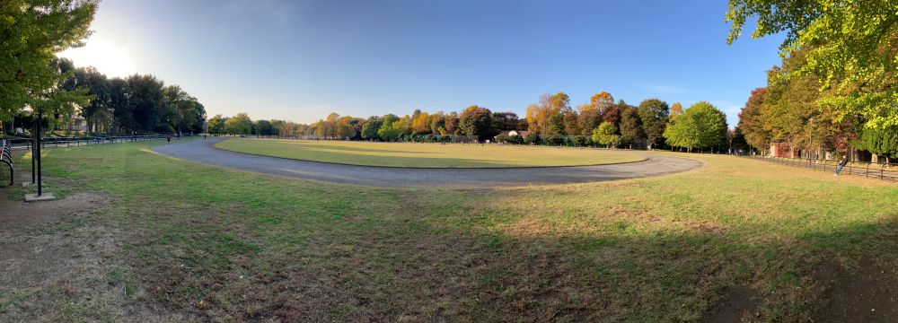 イチョウ並木から左に曲がり、光が丘芝生広場を一周します。