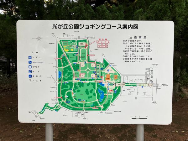 体育館の前からランニングを始めることもできますが、今回は陸上競技場のそばにある「光が丘ジョギングコース」のスタート地点から始めます。
