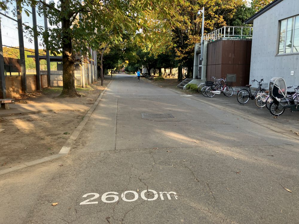 ジョギングコースは、100mごとの距離表示があります。コースを一周すると3100mで、スタート地点に戻ります。
