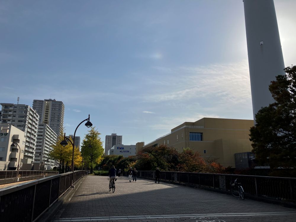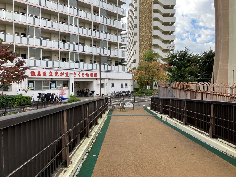 この橋を渡ると、光が丘大通りを越えて、光が丘IMA、イオン、LIVINがある商業エリアに入っていきます。