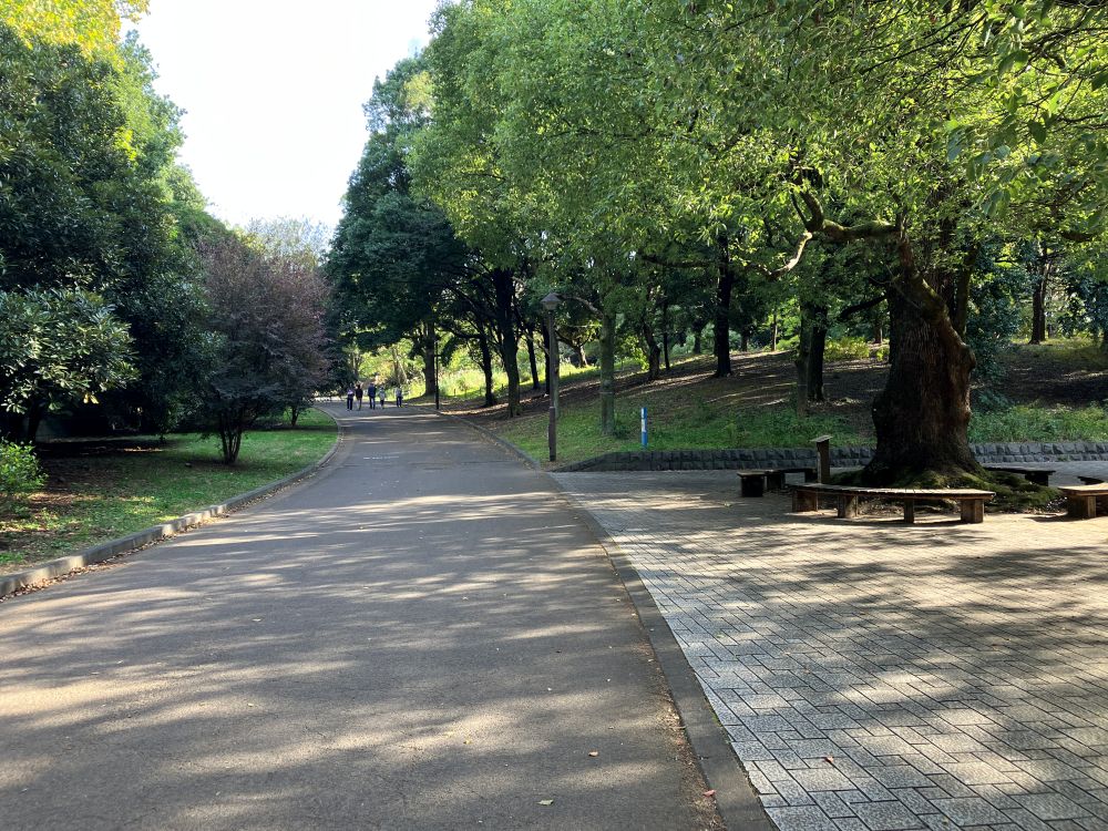 この先を右に曲がって、夏の雲公園のびのび広場の外周をぐるっと回っていきます。