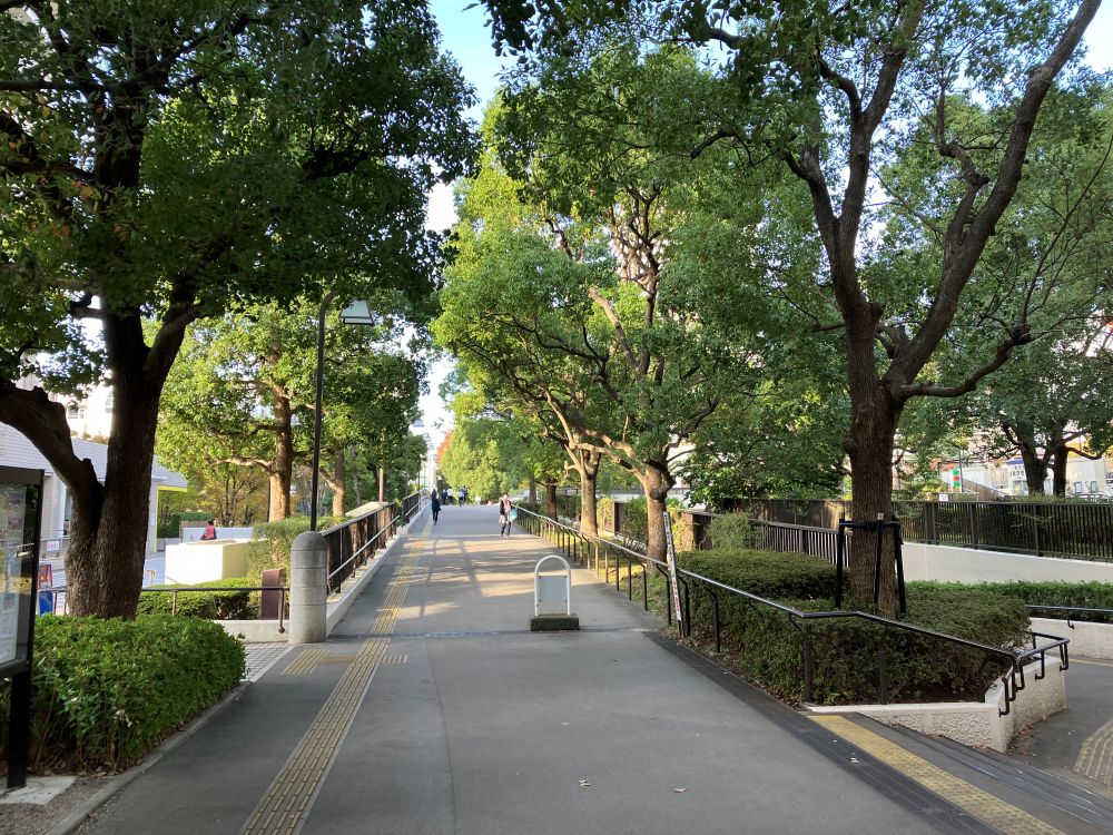 左側に光が丘IMAやLIVIN光が丘店が見える、ここがふれあいの径です。