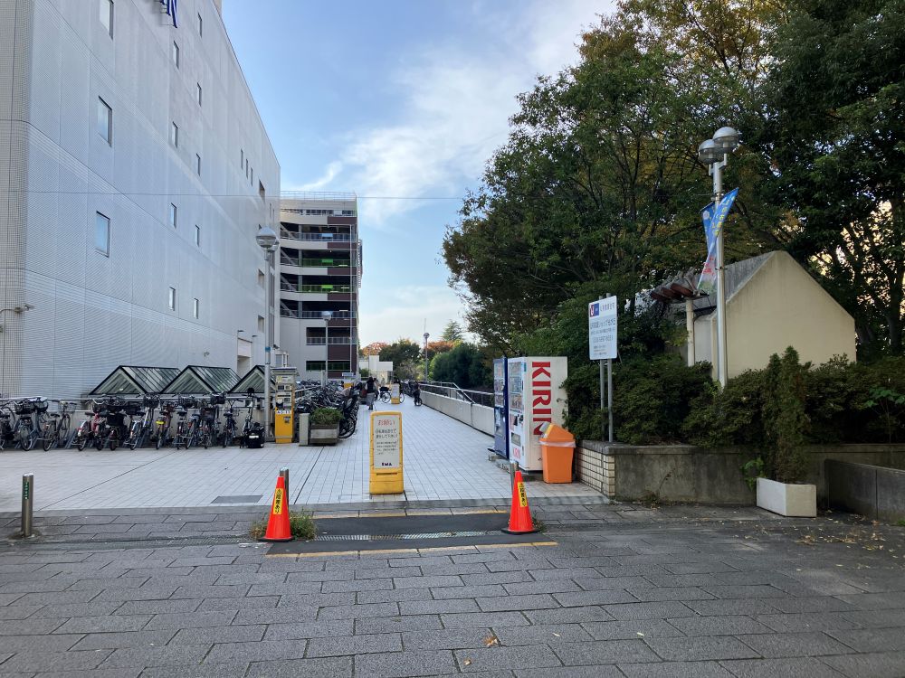 体育館を通り過ぎたら右に曲がり、パークス光が丘と光が丘体育館の間を進みます。