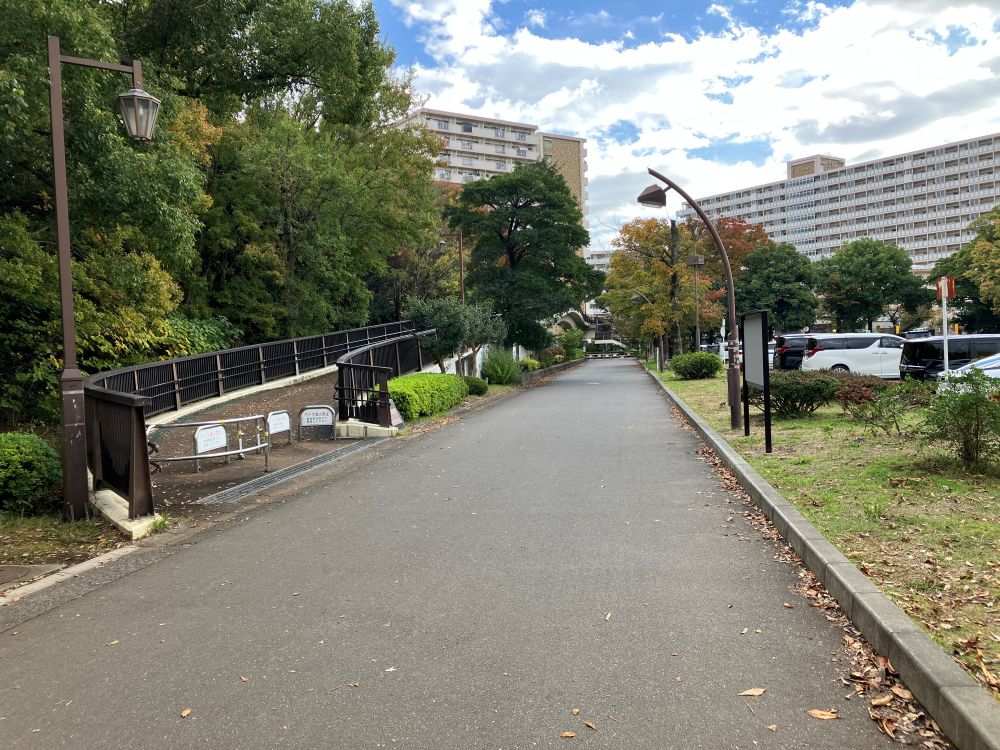 春の風公園の水遊び施設せせらぎを過ぎて、二又の道に来たら、左に曲がります。その先にあるのが、ねむのき橋です。この橋は、光が丘西大通りを渡ります。