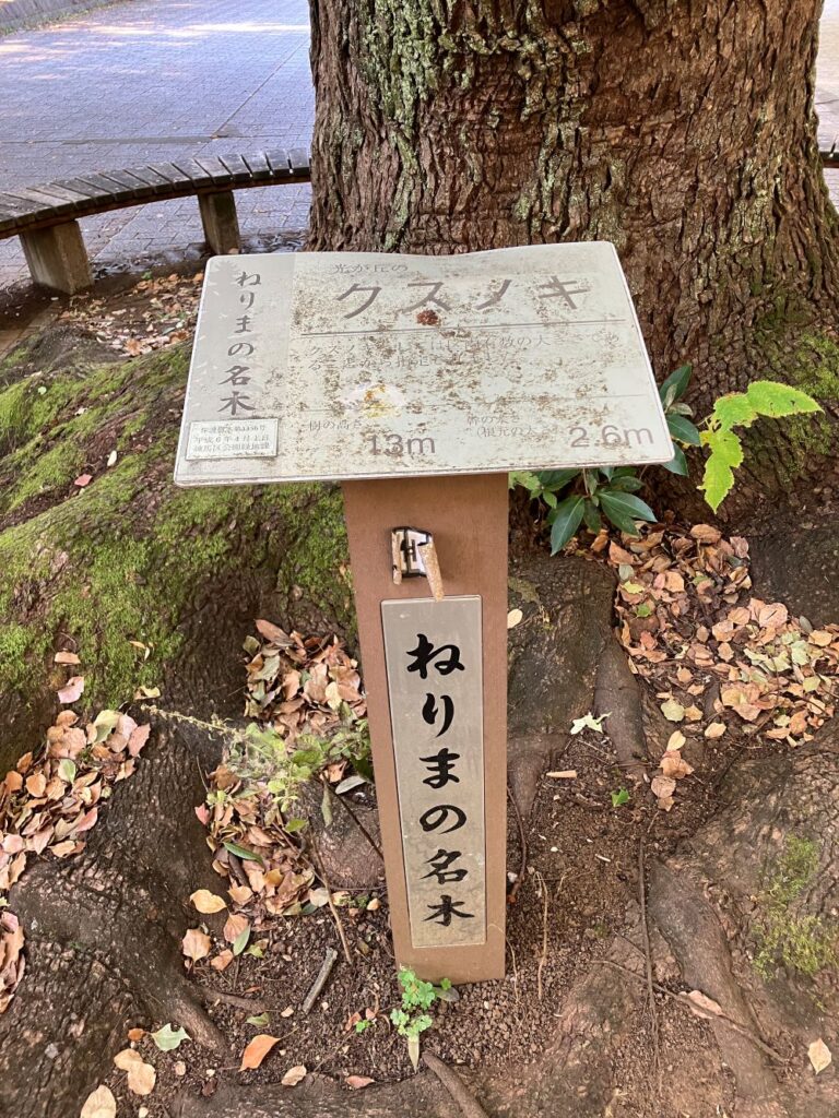 光が丘公園の外周部を1キロ過ぎたところに、「練馬の名木:クスノキ」が右側に見えてきます。ここから少し登って下ります。