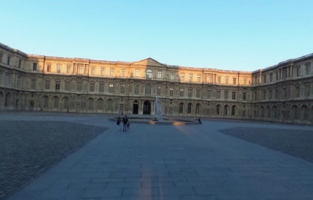 眼の前にある建物の中央に、通り抜けられる入口があり、「クール・カレ」というルーヴル美術館の中庭に入ることができます。