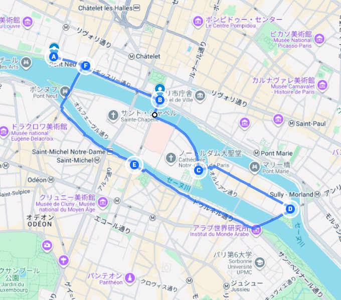 サン=ルイ島が上記コースマップの右側になります。