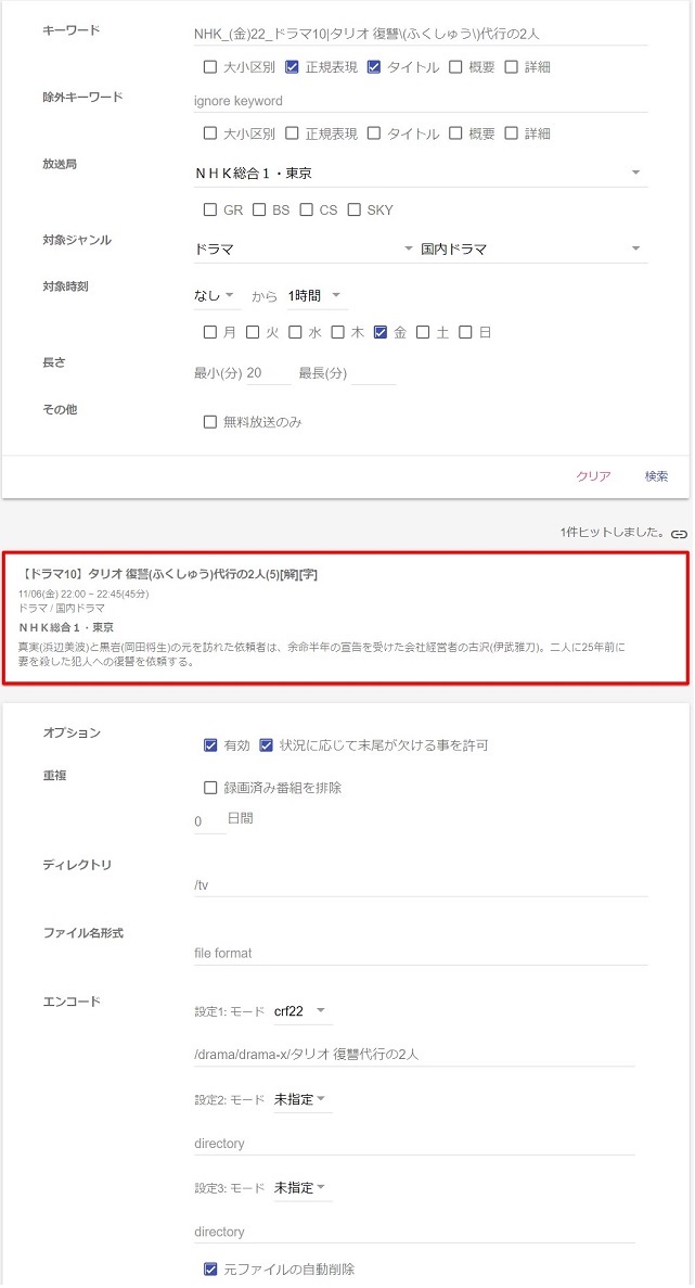 この枠の新規ドラマを登録する時は、キーワードとエンコードのフォルダ名の2箇所の入力だけで済みます。
